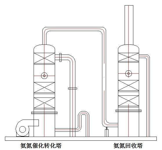 氨氮吹脫塔一般采用雙塔串連運(yùn)行,以提高氨的回收濃度。并在吹脫塔后面安裝氨氮吸收塔,使吹脫出來(lái)的氨氮廢氣通過(guò)吸收塔處理后,達(dá)標(biāo)排放。